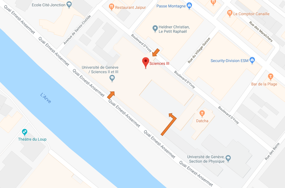 L’entrée se fait par le 4 boulevard d’Yvoy ou par Sciences II (30 Quai Ernest-Ansermet). Une fois dans le bâtiment, une signalétique au sol vous dirige vers le 1er étage de Sciences II, dans les locaux du Scienscope de l'Université, et dans le labo BiOutils.